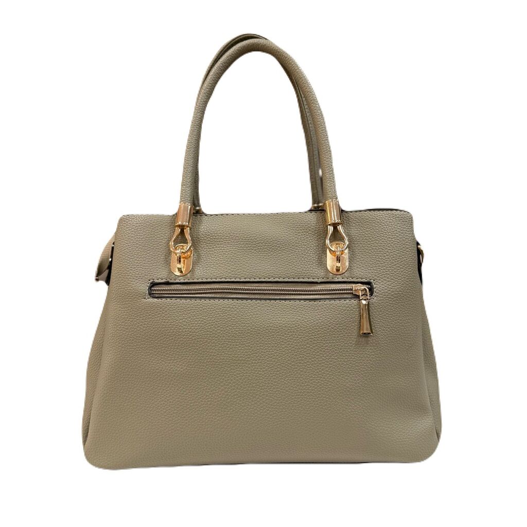 O design estruturado garante boa capacidade interna, ideal para carregar itens essenciais do dia a dia, mantendo tudo organizado e seguro. A bolsa conta com alças duplas reforçadas, proporcionando conforto ao carregar na mão ou no antebraço. Detalhes metálicos em dourado adicionam elegância e valorizam o acabamento.